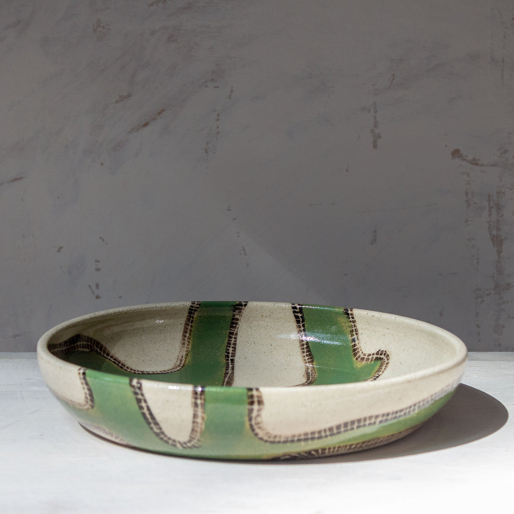 Materials: Glazed stoneware with underglaze and sgraffito decoration.
