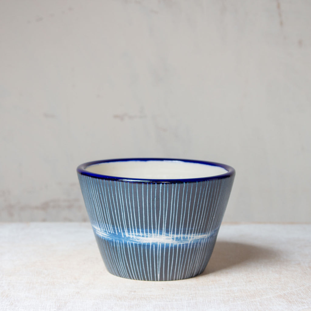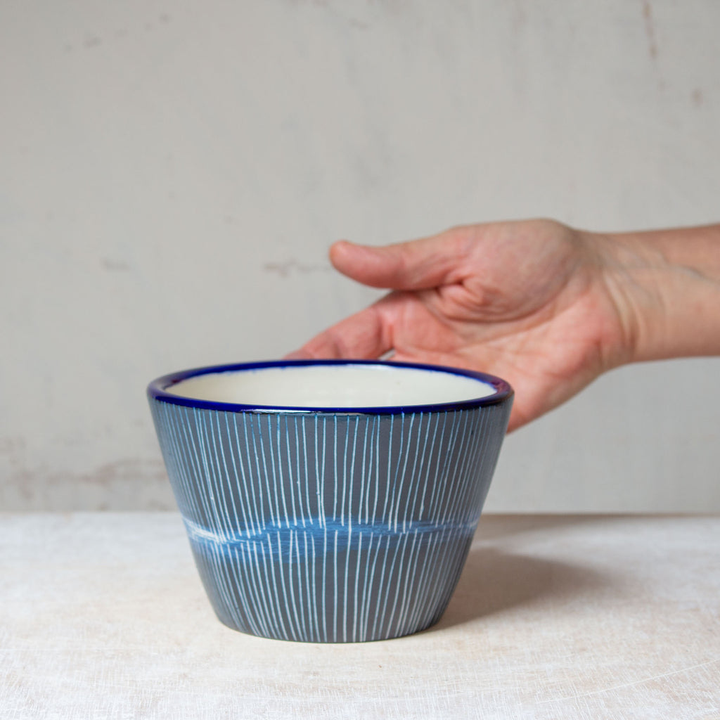 These are all hand thrown on the wheel, hand painted and etched so expect slight variation in size and design.