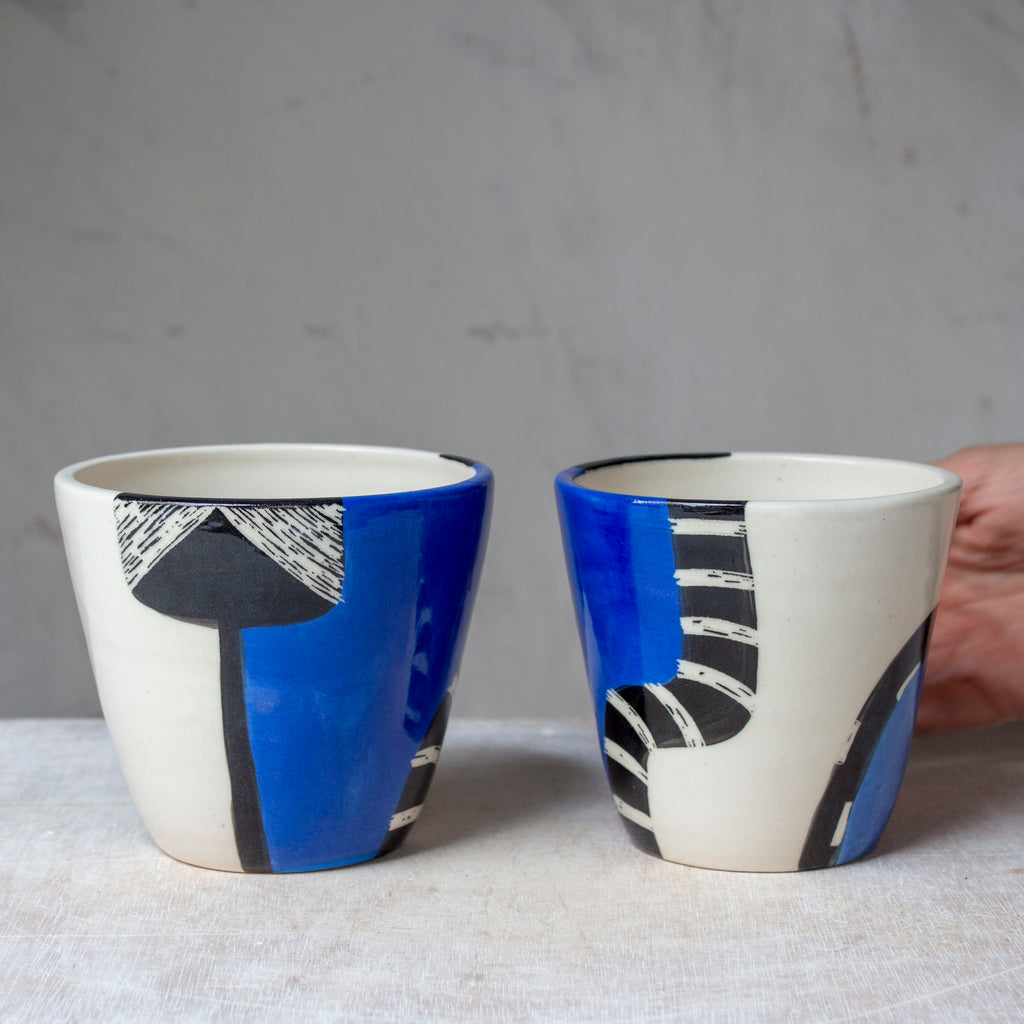 These are all hand thrown on the wheel, hand painted and etched so expect slight variation in size and design.
