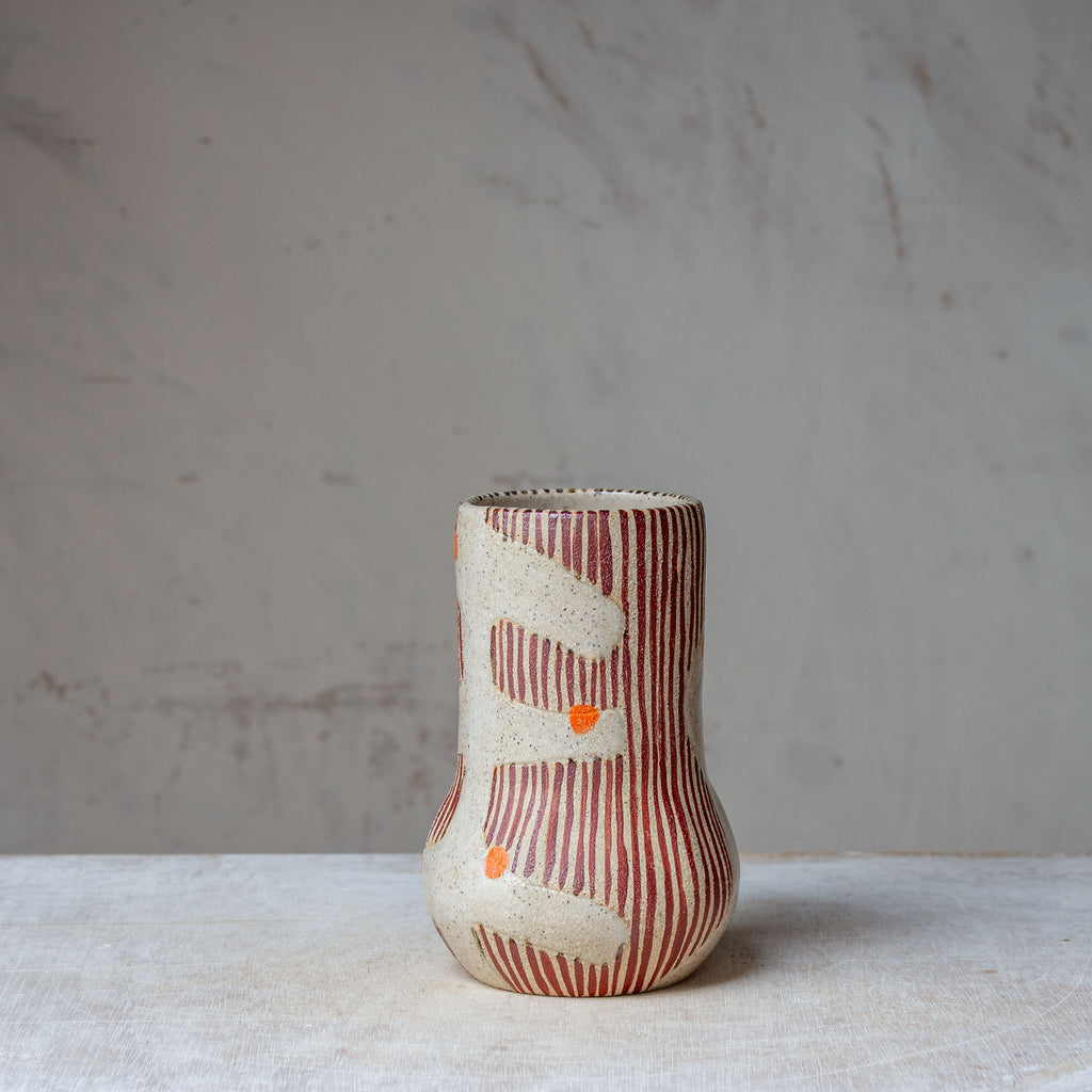 These are all hand thrown on the wheel, hand painted and etched so expect slight variation in size and design.