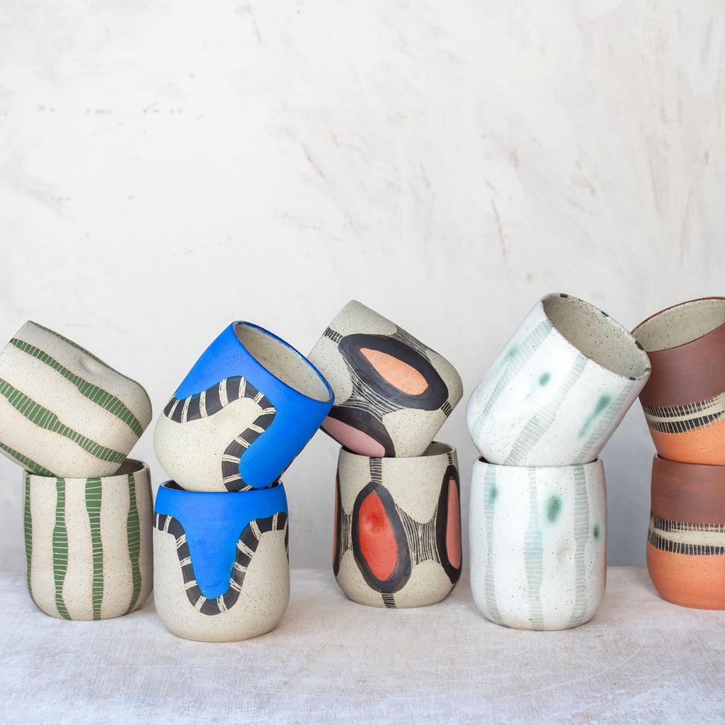 with dimple Description: Ceramic Tumbler with dimple for grasping
