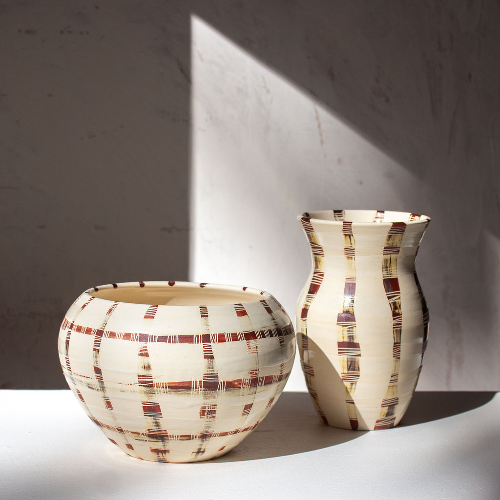 These are hand-thrown on the wheel and hand-painted, so expect slight variation in size and design.
