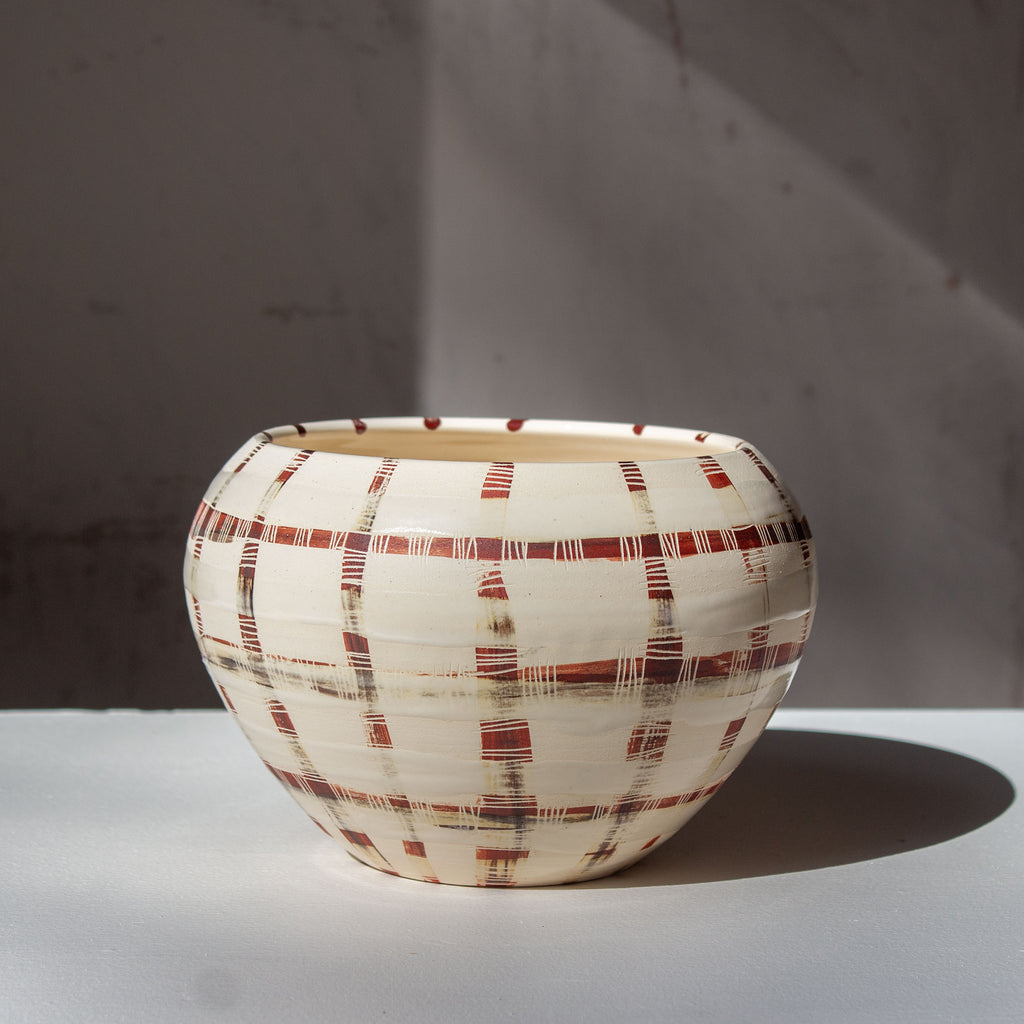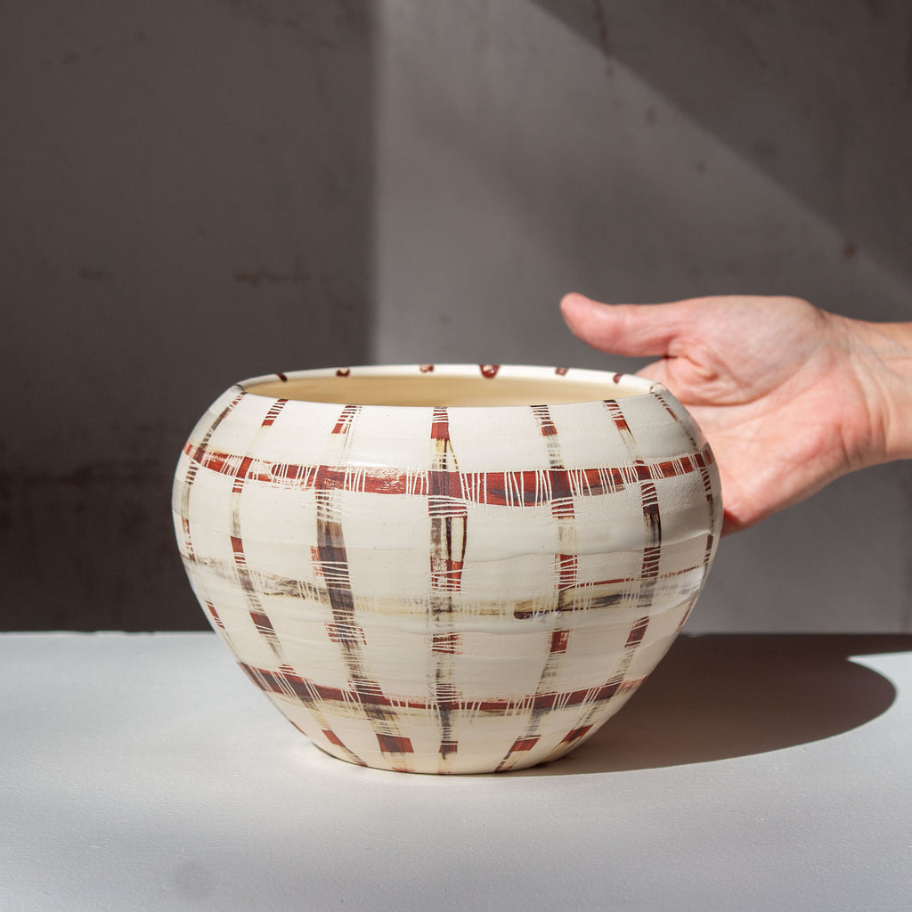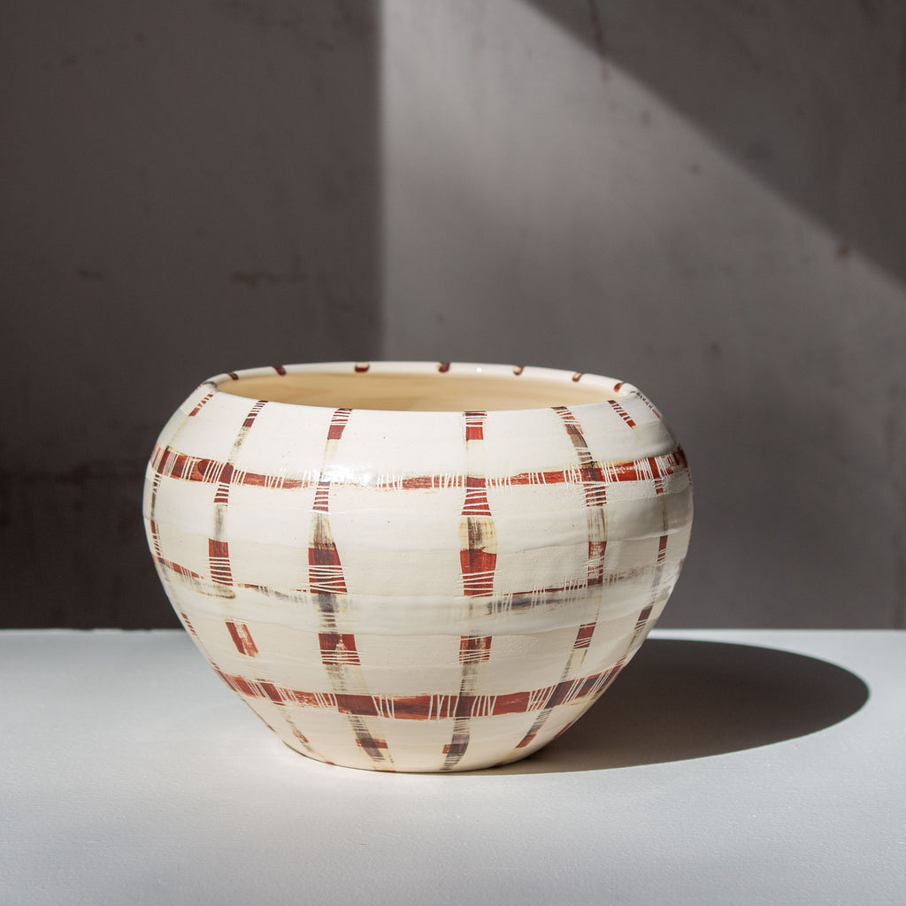 These are hand-thrown on the wheel and hand-painted, so expect slight variation in size and design.